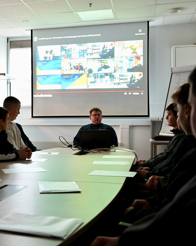 Begleitet von unseren Auszubildenden erhielten sie einen Einblick in unsere Ausbildungsberufe und die tägliche Arbeit bei Strama-MPS und wurden nach ihren jeweiligen Interessen auf verschiedene Berufsfelder und deren Aufgaben aufgeteilt.
